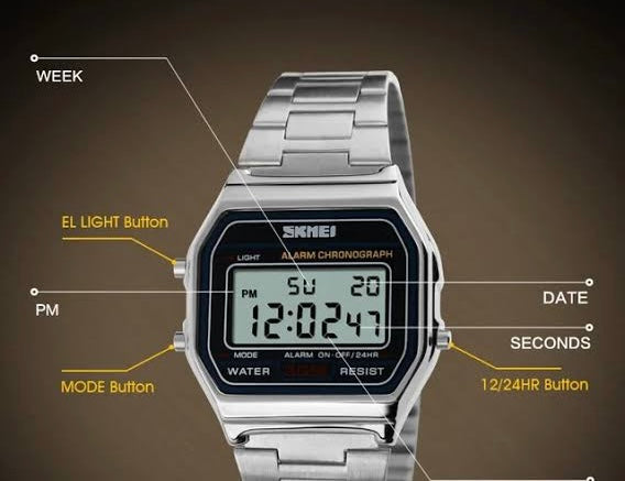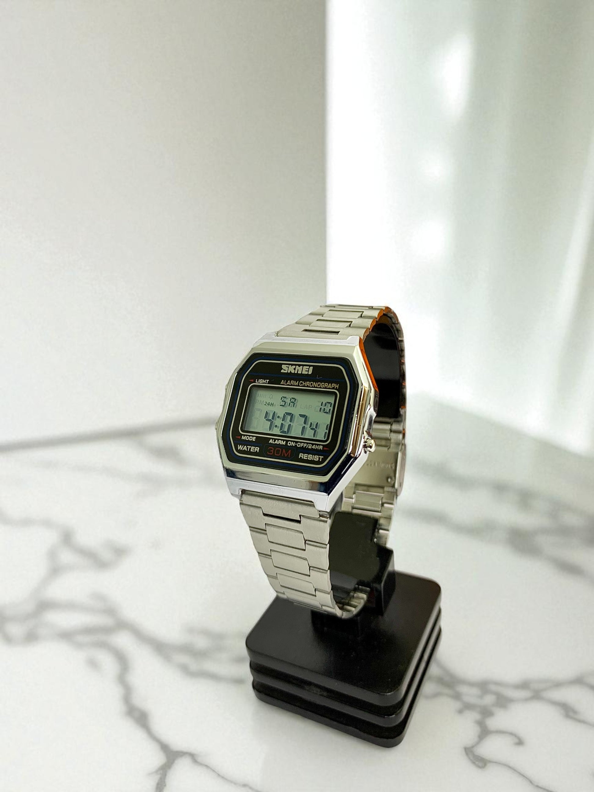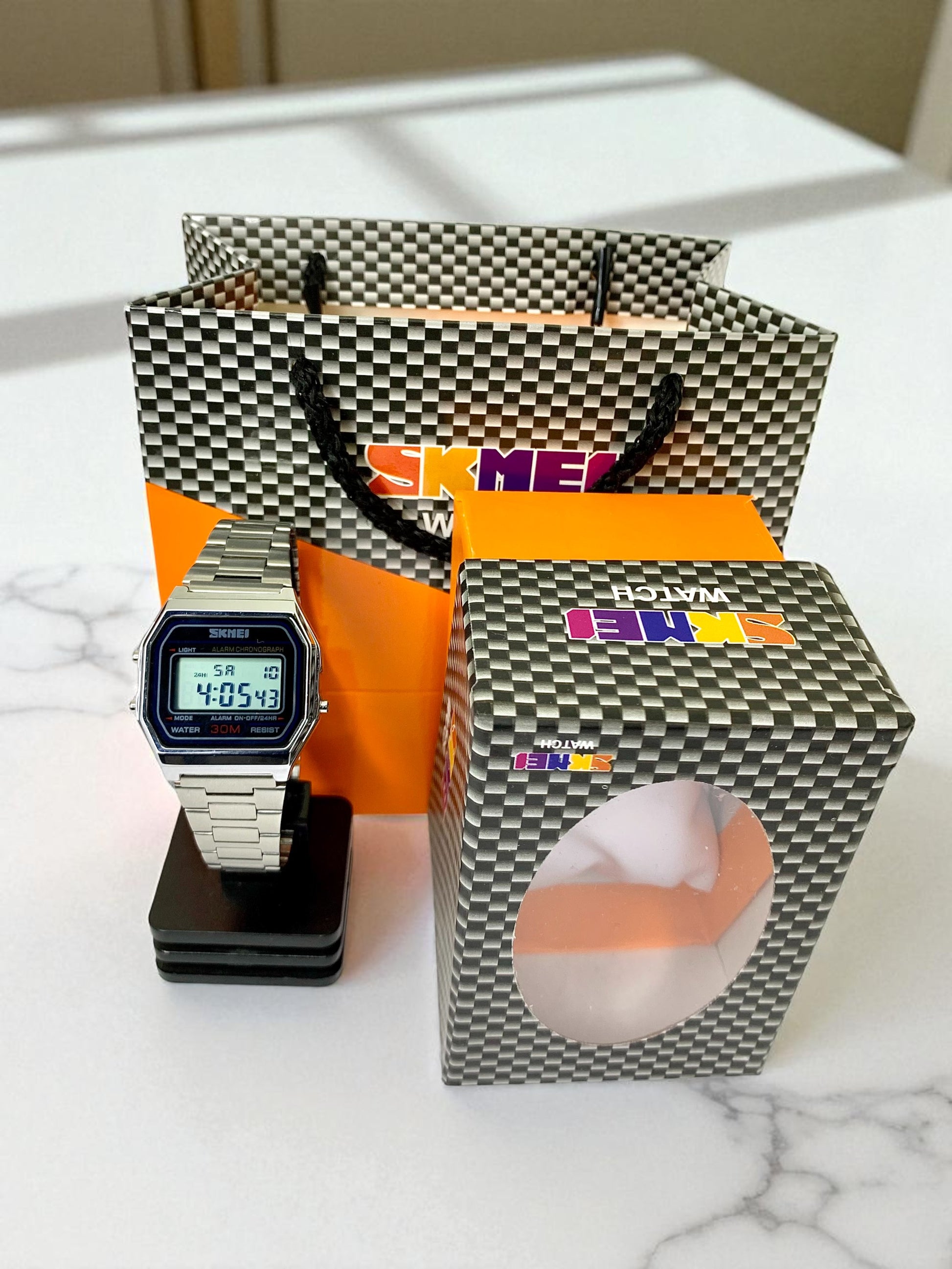 The SKMEI 1123 combines style and functionality in a sleek design. Water resistant with alarm and stopwatch features, it comes in a premium box with a 1-year warranty. A versatile watch that suits both casual and sporty looks